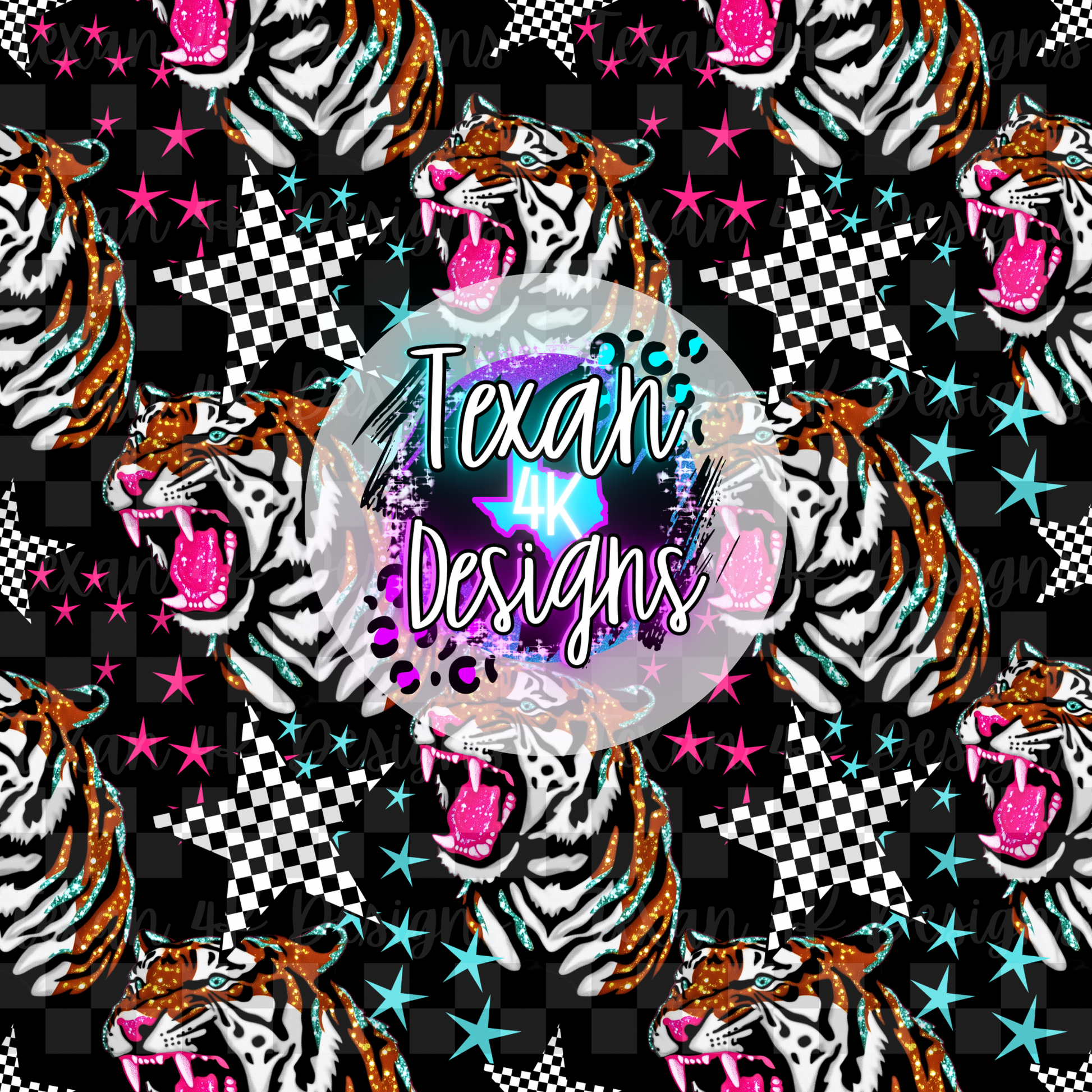 tiger checkered stars seamless- DIGITAL PNG